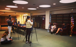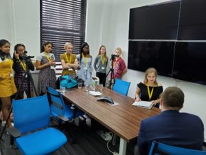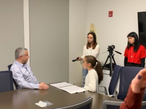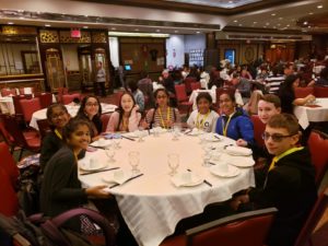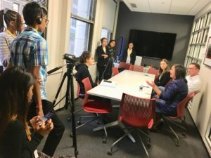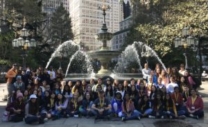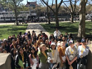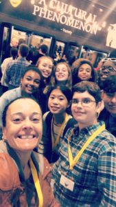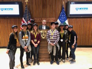 Wow – what an amazing and adventurous day 4! Six subway rides, three interviews, a food truck lunch in Greenwich Village, ice cream at a small side street parlor and a fabulous play! These students continue to amaze me with their poise and positive reflections in all of our experiences. Great interview with Commanding Officer of Criminal Enterprise at NYPD Headquarters. The photo below is in the press room! All of my students were given NYPD hats as mementos. The NYPD was ready to hire them and our mental health interviewee called them “intelligent, passionate, and unbelievably put together.” What a wonderful experience!