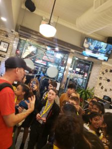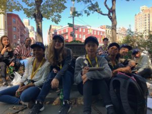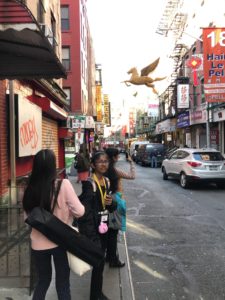 Today was our first day of using the Subway, and we learned a lot about problem solving and having a plan B (and C and D!) We found out there are several types of fare cards, and not all work in all situations. These tenacious kids made it work, however, and we had a great ride to Chinatown! We saw diverse architecture, a wide variety of family owned small businesses and stores and eclectic street performances. We enjoyed a delicious lunch and learned all about dim sum table-side service, dividing checks, and tipping.