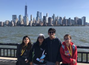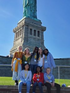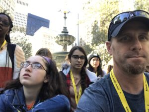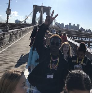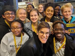 This evening, we regrouped at the Schoenfeld Theatre on 45th Street to experience the sparse but grippingly heartfelt musical Come From Away, inspired by the true story of 7,000 passengers whose planes were rerouted to the small town of Newfoundland on and after 9/11. Building on the connections they made yesterday at the monument, students came to understand an entirely different vantage point of the events during and after September 2001. Many students stayed a bit after the show to meet and get autographs from cast members.
